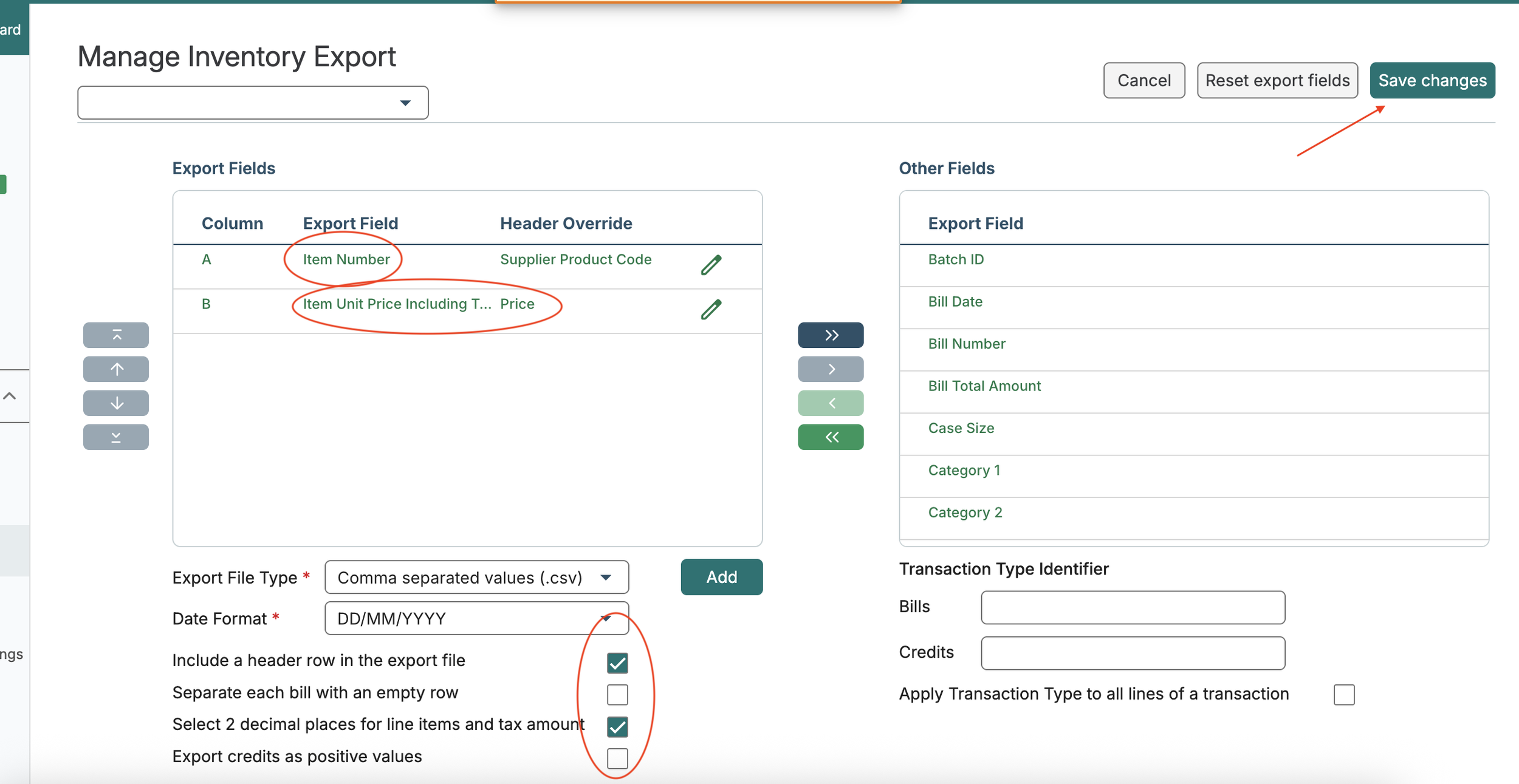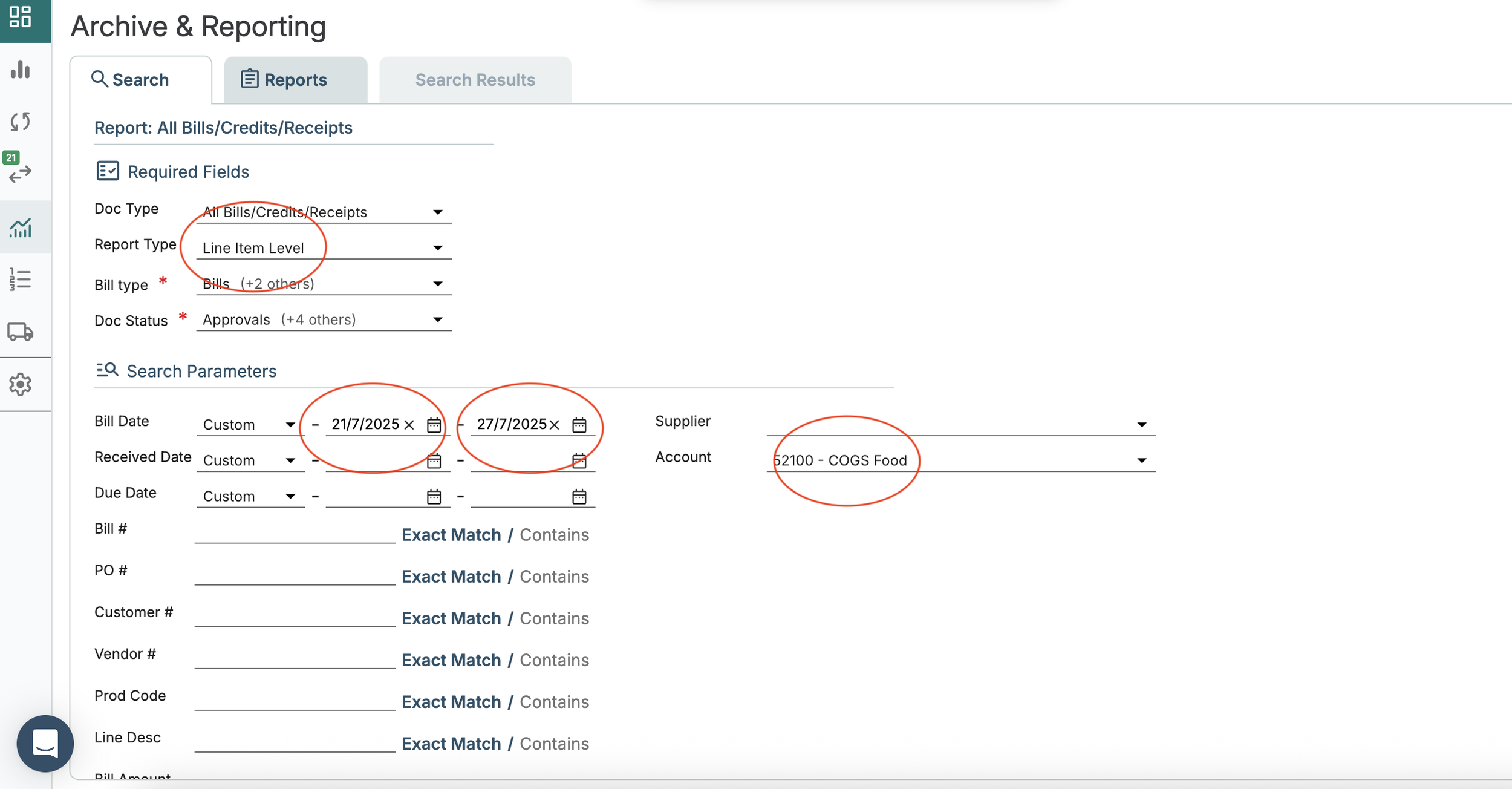 Choose a bill date range (we recommend selecting just the most recent week — this avoids inconsistent pricing for the same item and speeds up export)