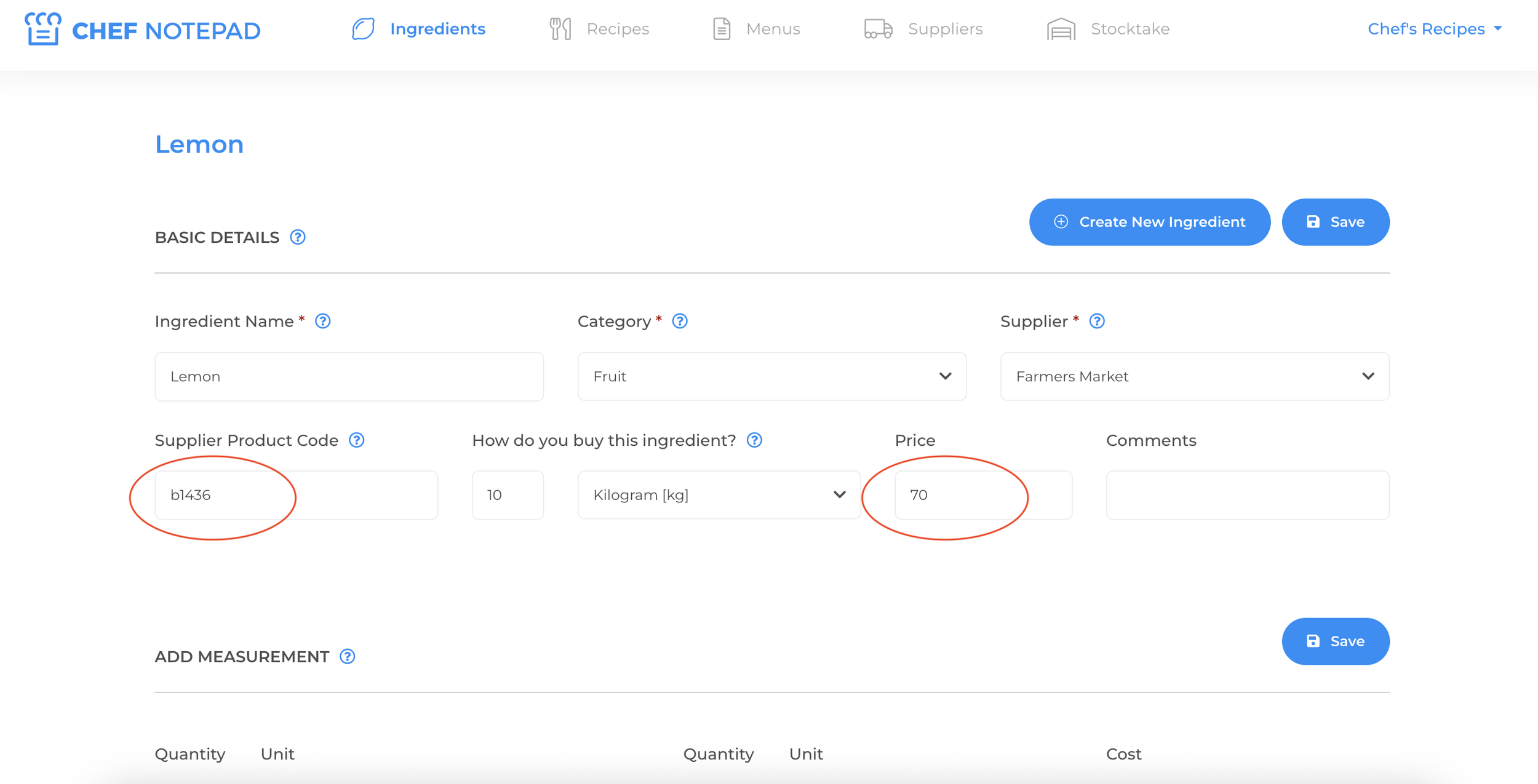 It’s important that these details are entered correctly when you first create an ingredient in Chef Notepad.